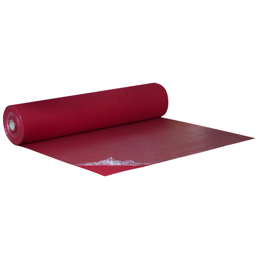 Als Rollenware mit 2 m Breite und 50 m Länge deckt der dunkelrote Flachfilz B1 mit Folie 100 m² Fläche ab. Die strukturfreie Oberfläche ohne Laufrichtung erleichtert das Verlegen und reduziert Verschnitt. Das Material besteht aus robustem Polypropylen-Flachfilz mit 3 mm Stärke und 330 g/m² Flächengewicht.