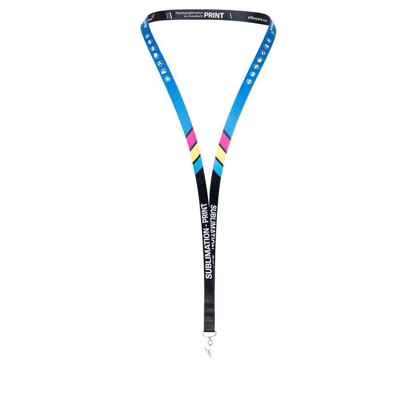 Schlüsselbänder bedruckt kaufen Sie bei allbuyone in hochwertiger Premium-Qualität. Das Material der Lanyards an sich sowie modernster 4c Druck (Thermosublimation) ermöglicht eine nahezu fotoähnlichen Aufdruck in absolut brillanten Farben. Dies garantiert einen besonders detailreichen, hochauflösenden Druck Ihrer Werbebotschaft.