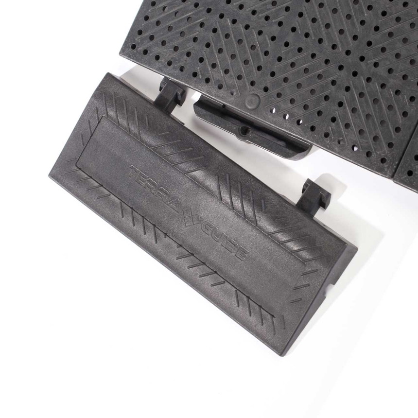 Terraguide Randabschlussleisten sind das passende Zubehör für das Terraguide Bodensystem. Mit den Randabschlussleisten schaffen Sie Indoor und auch Outdoor einen barrierefreien Übergang. Dadurch vermeiden Sie Stolperfallen und bieten Rollstuhlfahrern einen einfachen, angenehmen Übergang. Die Randabschlussleisten sind keilförmig und können ganz einfach an jeder gewünschten Randstelle sicher mit den Bodenplatten verbunden werden. Die Besonderheit der Randleisten: durch den einheitlichen Verbindungsmechanismus sind sie an allen Seiten der Bodenplatte ansteckbar. Durch den einfachen Aufbau wird die Aufbauzeit reduziert.