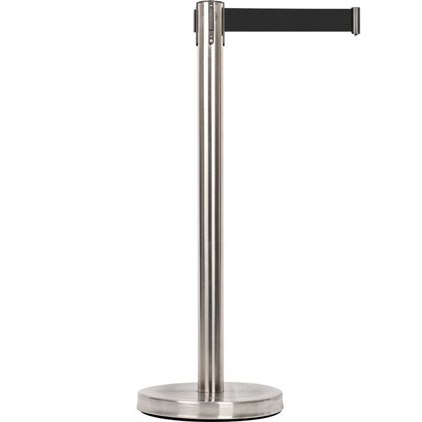 Absperrständer aus Edelstahl bestellen – mit Band in 2 m Länge – für günstige und edle Personenleitsysteme und Zutrittskontrolle für die vielseitige Verwendung. Der Absperrposten aus gebürstetem Edelstahl (Höhe ca. 98 cm) mit einem standfesten Bodenteller (Durchmesser 35 cm) ist eine elegante Lösung für Absperrungen und Besucherführung auf Events, im Einzelhandel, in Clubs und Gastronomie sowie für das Warteschlangenmanagement am Flughafen, in Ämtern und Behörden sowie auf Messen, Ausstellungen und in Museen.