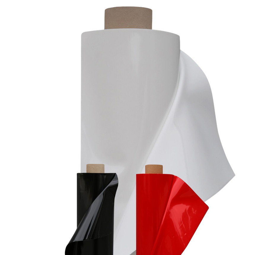 Die Lackfolie B1 bestellen Sie im Shop als ganze Rollen (30 m x 1,30 m, doubliert gerollt) in 3 Farben (rot, weiß, schwarz) in hochwertiger Qualität zum spitzen Preis! Neben der schwer entflammbaren Lackfolie erhalten Sie bei uns als Alternative auch eine Transparentfolie mit einer Breite von 140 cm.