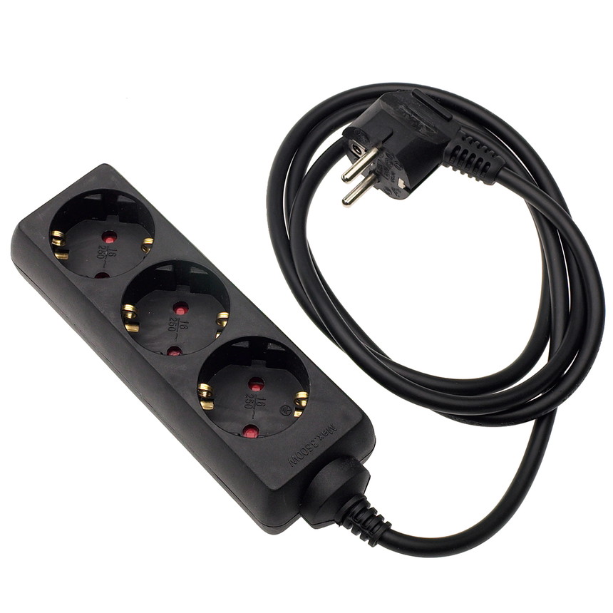 Bei Events, auf Messen, Ausstellungen und anderen Indoor-Veranstaltungen herrscht oft Steckdosen - Knappheit. Mit einem Mehrfachstecker lässt sich dieser Zustand leicht ändern: als Zwischenstecker genutzt können an die Steckdosenleiste alle benötigten Geräte angeschlossen werden. Nicht nur in öffentlichen Gebäuden, sondern auch im Büro gibt es Verwendungsmöglichkeit für die Steckdose. Schreibtisch - Zubehör, wie Lampen und Telefone sind dank der Steckdosenleiste gleichzeitig verwendbar. Mit der Mehrfachsteckdose schwarz behalten Sie immer den Überblick über die verwendeten Geräte und deren Kabel.
