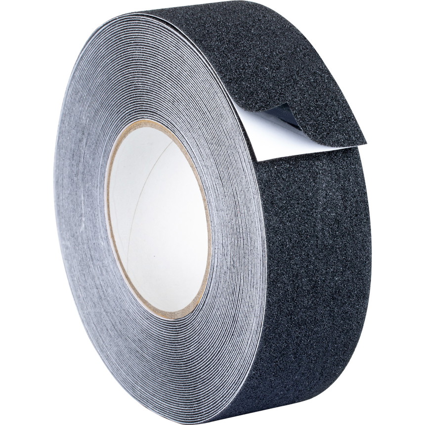 The black anti-slip tape is a top-quality adhesive tape. The grained, completely non-slip surface has a highly abrasion-resistant aluminium oxide coating. The anti-slip adhesive tape adapts perfectly to edges and offers excellent adhesion on smooth surfaces. The anti-slip tape reduces the risk of slipping over long periods of time, even on heavily used surfaces.
