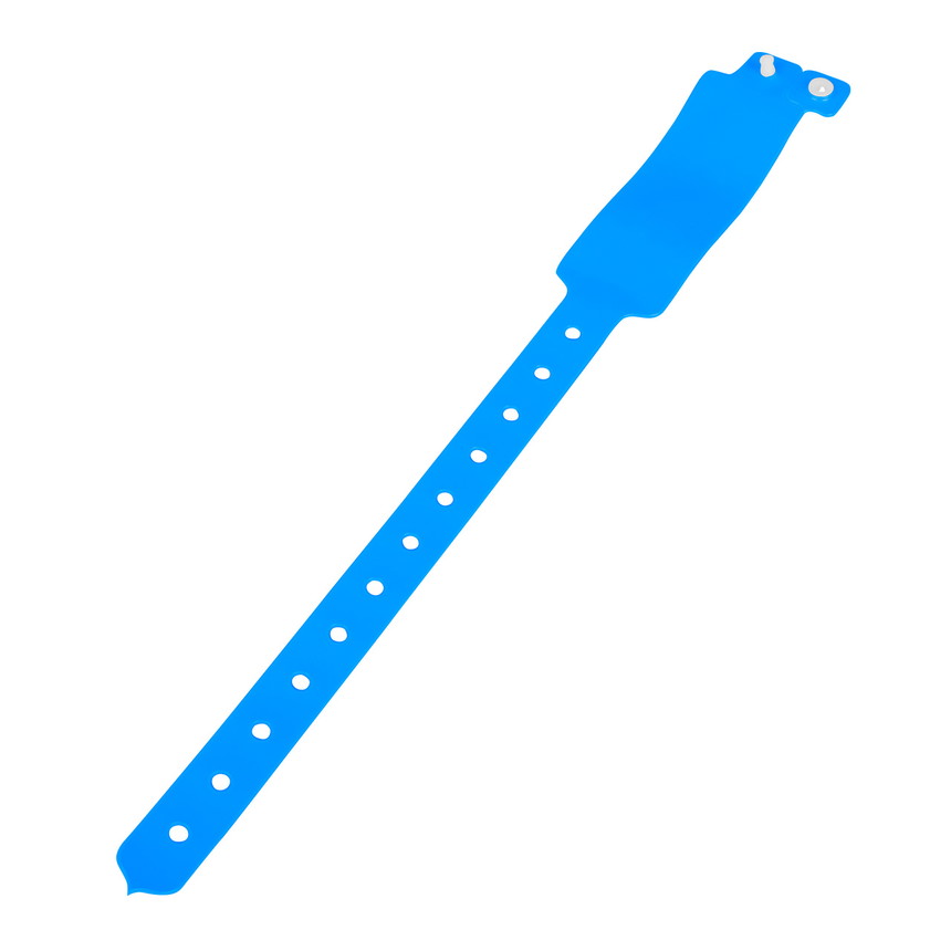 Plastic admission wristbands are a popular means of ensuring safe and orderly admission controls at concerts, festivals and other events. The colourful plastic wristbands have a snap fastener and can be individually adjusted to the wrist thanks to a row of holes.