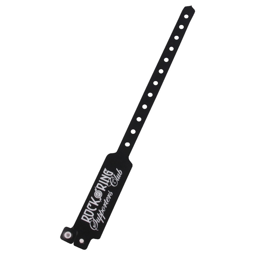 The bands can be adjusted to fit any wrist, they are adjustable and comfortable. The closure can only be closed once using a snap fastener. The standard range of vinyl (PVC) control wristbands is available in a selection of 30 colours. The print is of high quality, it is done in one colour (1c) in black.