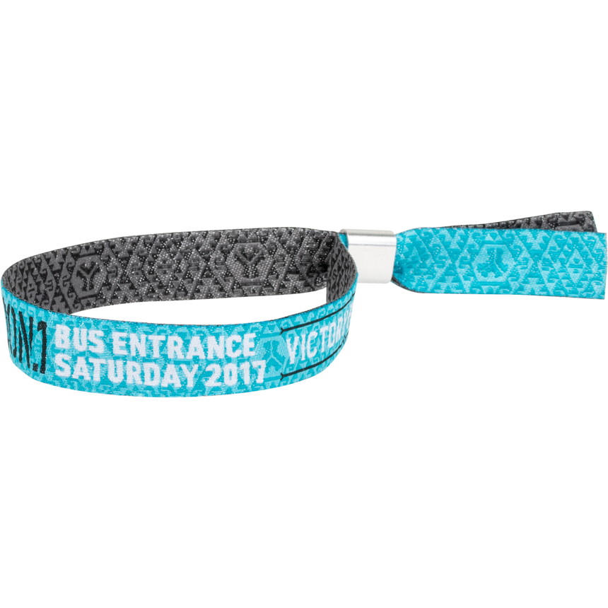 woven entry wristbands | 2-page | Aluminium fastener (pliers required) | Woven entry wristbands | Woven fabric admission wristbands with logo, slogan or motif | Waterproof, non-transferable, durable, colourfast, tear-resistant | Maximum comfort |