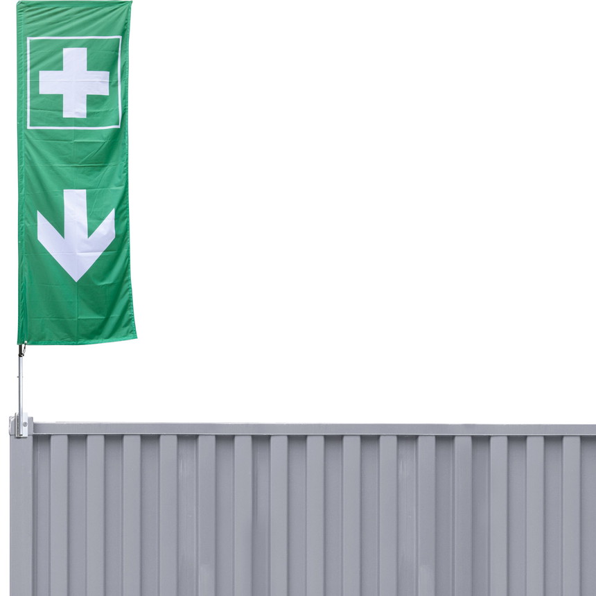 container flag with pictogram | First aid | Container flag with pictogram | rescue sign flag | first aid pictogram | total height 5.70 m – ideal for outdoor signage at events and festivals