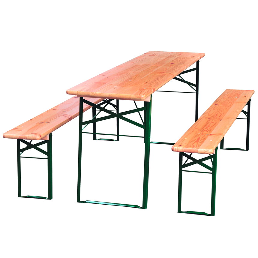 - Design: 3-piece folding beer table set with benches (1 table + 2 benches)