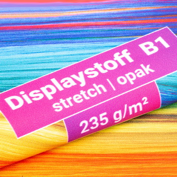 Fabrics offer the advantage that they are usually very absorbent. Printed in 6c digital print, textile materials therefore produce particularly brilliant, rich colours with sharp details. The mostly structured surface also absorbs incoming light and does not reflect spotlights and flashes back into the audience. Individual fabrics such as nonwovens have a slightly less colour-intensive print quality due to the nature of the material.