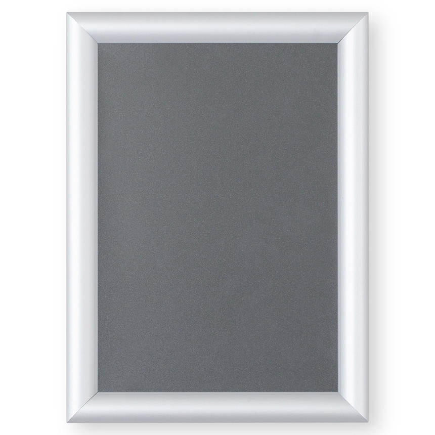 You can order the clamping frames here in two formats: DIN A2 and A4. The frame has an aluminium profile (25 mm thick) with a PVC protective film. The frame profile can be folded down, allowing posters to be changed quickly. The corners are mitred. The back is perforated for easy wall mounting.