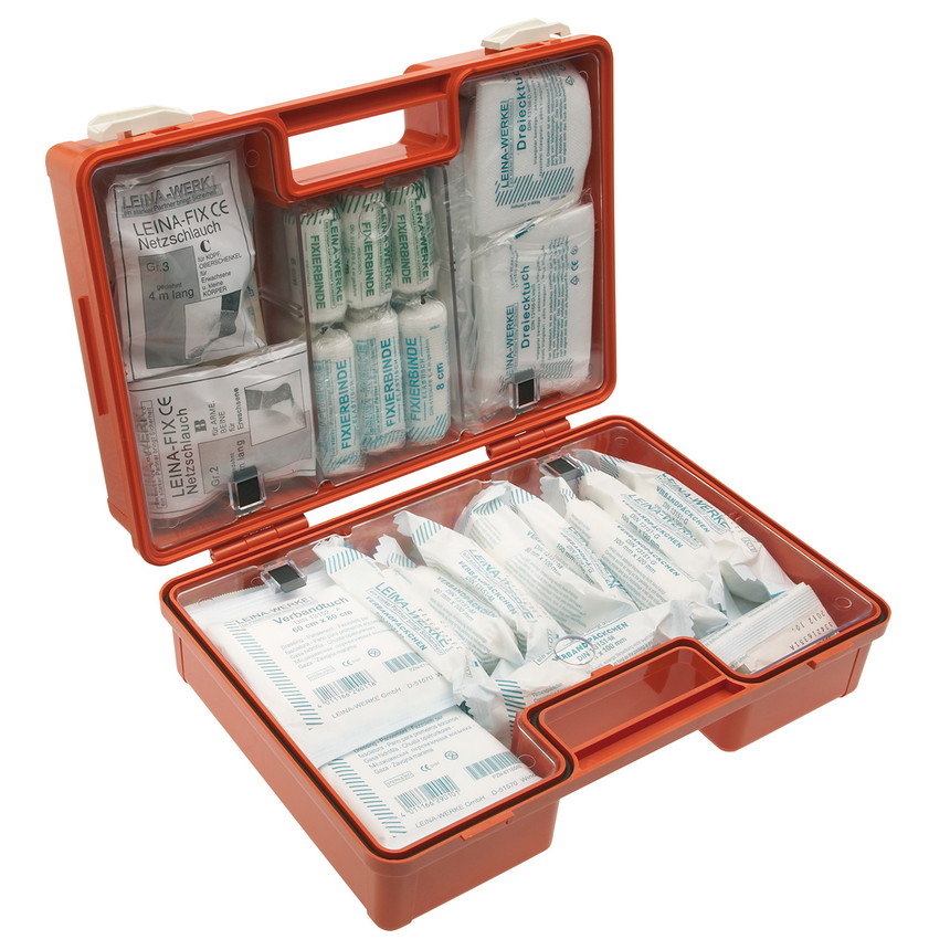 An aid kit car company in accordance with DIN 13169 is intended for use in administrative and commercial enterprises with 51 or more employees, manufacturing and processing companies with 21 or more employees, construction sites with 11 or more employees, as well as schools and kindergartens. The large aid kit car company is also ideal for production facilities, trade fairs, theatres and much more.